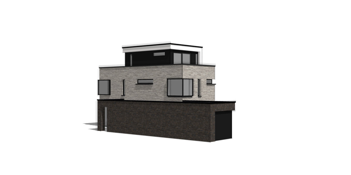 Op kavel 15 van de Melkhal hebben we samen met opdrachtgevers Michael en Sandra een riante vrijstaande woning gerealiseerd. Op deze grote binnenstedelijke kavel ervaren de toekomstige bewoners zowel de voordelen van het wonen in de binnenstad, alsook de ruimte die je krijgt bij een kavel buiten de binnenstad. Uniek dus! De woning is uitgevoerd in verschillende materialen die de verschillende volumes accentueren: een lichte, grijze baksteen voor het hoofdvolume, met een antraciete, contrasterende baksteen voor het lage volume. Beide bakstenen volumes worden omkaderd door het hoge volume in licht stucwerk.